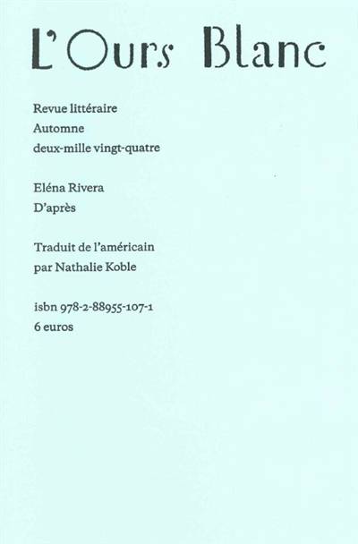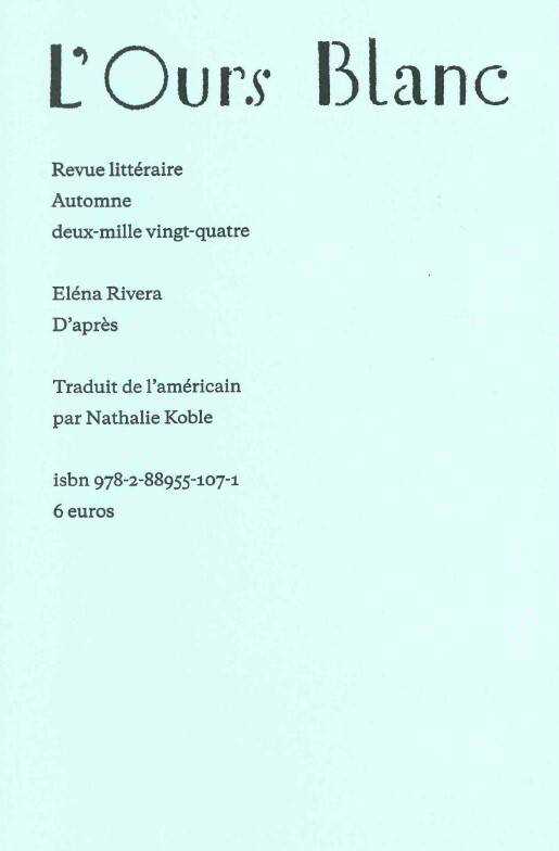 Loin de la pratique classique de l’ekphrasis ou de l’exercice d’admiration, Eléna Rivera cherche dans l’œuvre évoquée une configuration visuelle sur laquelle construire le poème, faire surgir une structure verbale en réponse à la suggestion de l’image, qui entrelace les expériences et déclenche l’activité mémorielle.