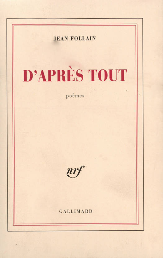 Par sa concision même, la poésie de Jean Follain demeure poésie ouverte. Elle donne avant tout à voir la seule existence des choses et êtres, aussi leurs interférences de calme, de violence, d'effarement. Follain immobilise dans le temps tel geste, telle vision s'accordant aux ambiguïtés du monde habité. Cette poésie qui met en cause chaque mot se fortifie d'une attention méticuleuse et son dépouillement lui est imposé par son propos même. On découvre chez Follain une poésie contact où s'interpénètrent la vie et le rêve de la vie - poésie qu'André Dhôtel a, au surplus, dénommée "médiatrice".