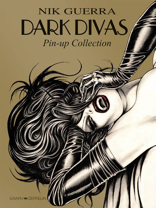 Recueil de plus de cent dessins de pin-up aux poses sensuelles, en noir et blanc souligné de rouge sang.