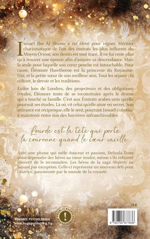 Ismaël Ibn Al Shams a été élevé pour régner. Héritier charismatique de l’un des empires les plus puissants du Moyen-Orient, son destin est tout tracé. Il ne lui reste plus qu’à trouver une épouse afin d’assurer sa descendance. Mais la seule pour laquelle son coeur penche est intouchable. Pour cause, Éléonore Hawthorne est la princesse du Royaume-Uni, et la petite sœur de son meilleur ami. Tout les sépare : la culture, le devoir, les traditions.