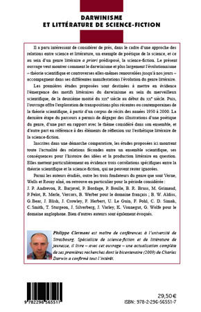Il a paru intéressant de considérer de près, dans le cadre d'une approche des relations entre science et littérature, un exemple de poétique de la science, et ce au sein d'un genre littéraire a priori prédisposé, la science-fiction. Le présent ouvrage veut montrer comment le darwinisme et plus largement l'évolutionnisme - théorie scientifique et controverses elles-mêmes renouvelées jusqu'à nos jours - accompagnent dans ses différentes manifestations l'évolution du genre littéraire.
