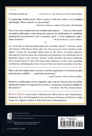 In a book that is both groundbreaking and accessible, Daniel C. Dennett, whom Chet Raymo of The Boston Globe calls "one of the most provocative thinkers on the planet," focuses his unerringly logical mind on the theory of natural selection, showing how Darwin's great idea transforms and illuminates our traditional view of humanity's place in the universe. Dennett vividly describes the theory itself and then extends Darwin's vision with impeccable arguments to their often surprising conclusions, challenging the views of some of the most famous scientists of our day.