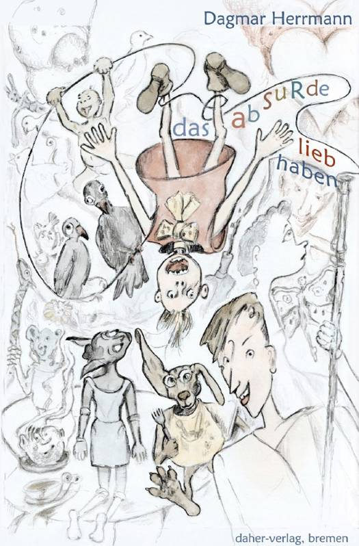 das absurde liebhaben, dazu werden die leser aufgefordert in diesem buch, gefallen zu finden an dem, was man "normalerweise" abtut als hirngespinste, auswüchse überbordender fantasie, wenn die gedanken in regionen auf reisen gehen, die nicht unbedingt vom verstand diktiert werden ... hier regiert auch keine vor gabe und kein akademischer ismus, einfach nur mitgehen und mitmachen beim manchmal aberwitzigen sprung ins dunkel der unlogischen ungewissenheiten, wie alice ins wunderland, sich wundern und doch innehalten an orten und passagen, die einem plötzlich so unheimlich bekannt und plausibel erscheinen, aber dennoch nicht zu entschlüsseln sind. Wer weiß schon, was dahinter steckt und wieviel tiefgründiges dabei zutage gefördert wird, wenn man non stop den inspirationen freien lauf lässt und sie kapriolen schlagen. Dem geht man meistens aus dem weg, so wie man träume schnell vergisst, es ist vielleicht nicht ganz ungefährlich, ihnen nachzuhängen, doch wie in träumen werden auch sie in den unterschiedlichsten texten mit grotesken bildern und wortakrobatik verpackt und codiert, dass es schwer ist, "dahinter" zu kommen, hinter den spiegel zu schauen, der ja das eigene konterfei wiedergibt, und so schüttelt man seinen kopf, ob solchen unsinns, und doch soll es freude bereiten demzufolgen dahin, wo wi(e)der die (un)vernunft triumphe feiert.