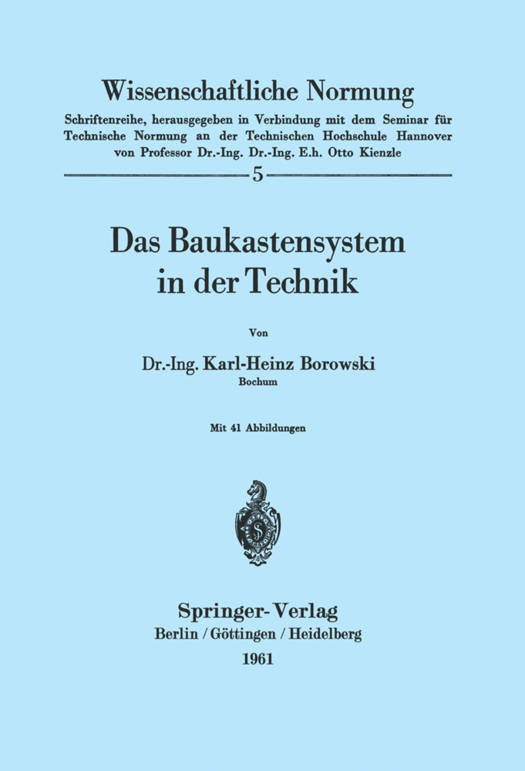 Das Baukastensystem ist in der Industrie so bekannt., daß man fragen könnte, wel hen Sinn es habe, darüber eine Monographie zu schreiben. Entsprungen ist es der natürlichen Anschauung über Elemen- tarisierung und Kombination und seit der Jahrhundertwende ist es be- wußt in mannigfachen Formen verwirklicht worden. In Wirklichkeit ist es viel älter und zeigt seine großartige Vollendung im System der Buchstaben und Zahlen. Sprang es dann aus der geistigen Entwicklung zum Bau, zum Spielzeug, zu Geräten und Maschinen und damit zum bewußten technischen Schaffen über, so mußte es sich lohnen, über das Wesen dieses nach dem Kinderbaukasten benannten Systems nachzudenken. Diese Betrachtung gehört wie die in Heft 3 dieser Schriftenreihe von A. N ASVYTIS mehr theoretisch behandelte Kom bina torik in die Schriften- reihe "Wissenschaftliche Normung", weil das auf der Kombinatorik aufbauende Baukastensystem eine bedeutsame und eigenartige Form der Normung ist. Es lehrt die bewußte Auflösung ganzheitlich gesehener Gegenstände in Elemente, die sich in möglichst vielen anderen Kombi- nationen wiederholen. Dadurch teilen sie mit den DIN-Normteilen die wirtschaftliche Herstellung in großen Mengen und die Austauschbarkeit zwecks vielseitiger Verwendung. Geht dieses Ordnungsprinzip quer durch das gesamte technische Schaffen, so liefert seine systematische Durcharbeitung einen Beitrag zu einer allgemeinen Konstruktionslehre und wirkt der spezialisierten Betrachtung der einzelnen Sparten entgegen.