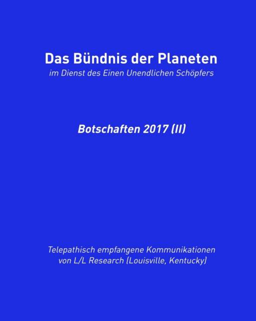Die gechannelten Botschaften des "Bündnis der Planeten im Dienst des Einen Unendlichen Schöpfers" aus dem 2. Halbjahr 2017 von L/L Research (Louisville, Kentucky). "Warum sollte Vergebung das Rad des Karma anhalten und notwendig sein - in einer Schöpfung, in der alles gut war, ist und immer sein wird?" Solche und viele weitere Fragen mit spirituellem Bezug stellte die L/L Research-Gruppe wieder im ausklingenden Jahr 2017 an das Bündnis der Planeten. Als Channeling-Instrumente fungierten in diesem Zeitraum Jim McCarty und Steve Tyman. "Das Prinzip von Q'uo" ist eine Verbindung von drei - nach eigenen Aussagen - außerirdischen Bevölkerungen aus den sogenannten vierten, fünften und sechsten "Dichtestufen von Bewusstsein". Im Rahmen der Channeling-Meditationen von L/L Research (Louisville, Kentucky) spricht Q'uo seit 1985 durch die offene Gruppe, die auf den Piloten, Ingenieurswissenschaftler und Paranormalitätsforscher Don Elkins (1930-1984) zurückgeht.