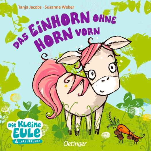 Das kleine Einhorn ist verzweifelt: Sein Horn will einfach nicht wachsen! Die Ziege bietet an, ihm eins auszuleihen. Das Nashorn beruhigt, dass seins auch sehr lange gebraucht hat. Das Pferd tröstet mit einem Kuss. Und plötzlich kribbelt es auf der Stirn.