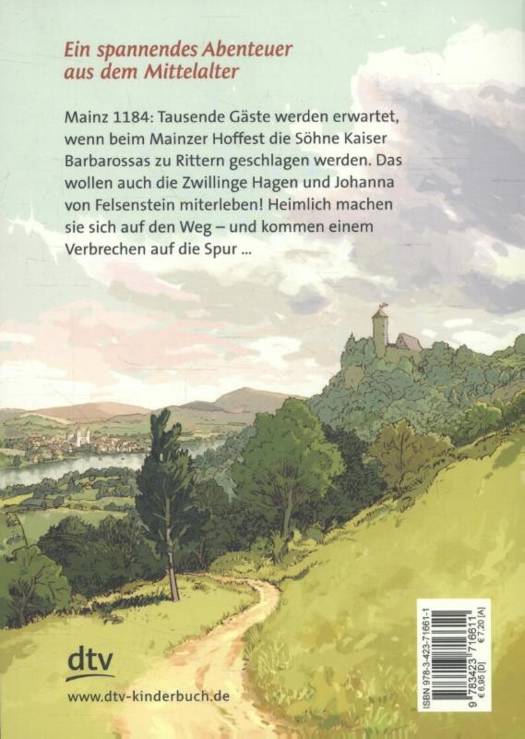 Spannendes Abenteuer aus dem Mittelalter Mainz 1184: Am Rande des großen Festes zu Ehren der Söhne Barbarossas, die zu Rittern geschlagen werden sollen, finden die Zwillinge Hagen und Johanna ein Säckchen, prall gefüllt mit Gold. Ein Reiter im roten Umhang verlor es, als er im wilden Ritt davonpreschte. Hagen und Johanna machen sich auf die Suche nach dem geheimnisvollen Roten Ritter. Doch der Gesuchte führt Böses im Schilde...