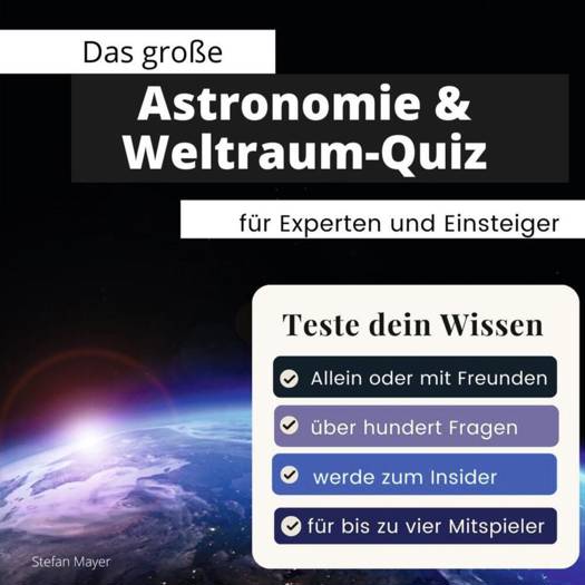 Wie viele Uranusmonde sind bislang bekannt? Welchen Planeten entdeckte Clyde Tombaugh im Jahre 1930? Mit welchem Fachbegriff wird die Tag-und Nachtgleiche bezeichnet? Konntest Du diese Fragen beantworten? Bist du ein wahrer Insider?Willst Du noch mehr lernen?Willkommen bei diesem außergewöhnlichen Quizbuch. Verbessere spielerisch dein Wissen und lerne nebenbei beim Quizzen alles über deine große Leidenschaft. Dieses Buch beinhaltet liebevoll ausgewählte Quizfragen von relativ einfach bis ziemlich schwer. Und das Beste an diesem Buch: Du kannst es mit bis zu drei Freunden und deiner Familie gleichzeitig spielen. Jeder kann seine Ergebnisse eintragen und dann anschließend im Lösungsbogen hinten überprüfen, wer richtig lag. Jetzt einfach noch die Punkte zusammenzählen und den Quizkönig oder Königin prämieren. Viel Spaß!- Bilder-Booklet in großem, quadratischem Format: 21 x 21 Zentimeter- Lichtbeständiger Druck auf mattem Papier- Softcover in Premium-Papier mit Filmlaminierung- Die perfekte Geschenkidee: ob zum Geburtstag, zu Weihnachten oder als kleine Geste zwischendurch- Dieses preiswerte Buch wird umweltschonend in Europa gedruckt