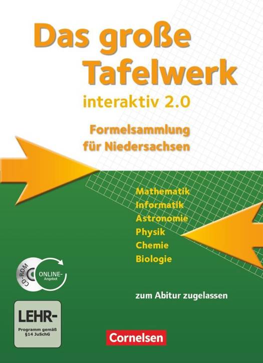 - Die vorliegende Ausgabe des Tafelwerks wurde speziell im Hinblick auf die Einsetzbarkeit in der Abiturprüfung an niedersächsischen Gymnasien bearbeitet. Die allgemeinen Bildungsziele und fachlichen Schwerpunkte der aktuellen Rahmenrichtlinien werden umfassend berücksichtigt.