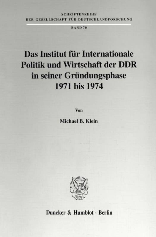 Von 1971 bis 1990 gab es in Ost-Berlin das »Institut für Internationale Politik und Wirtschaft« als Teil des SED-Systems. Ausgerichtet auf Westanalyse, parteiisch im totalitären Sinne, ein Instrument des Politbüros, eng verbunden mit dem Ministerium für Staatssicherheit, zugleich aber auch nach Westen ein Element des kontrollierten Dialogs, der angedeuteten Vorfeld-Diplomatie, der Sondierung, der Beeinflussung und der Koordinierung. Der Zusammenbruch der DDR 1989 und die Öffnung der Archive gaben die Voraussetzungen, um Strukturen, Leitprinzipien und Leistungen des IPW in seiner Gründungsphase aus der Innen- und Außensicht zu analysieren.