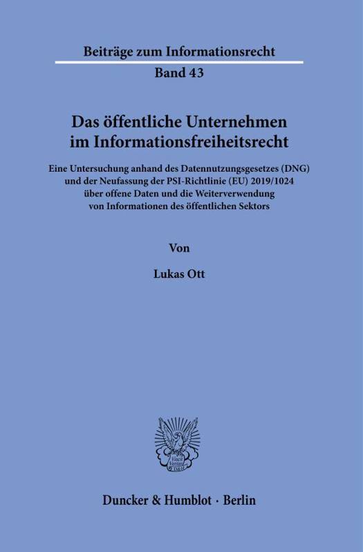Eine Untersuchung Anhand Des Datennutzungsgesetzes (Dng) Und Der Neufassung Der Psi-Richtlinie (Eu) 2019/1024 Uber Offene Daten Und Die Weiterverwendung Von Informationen Des Offentlichen Sektors