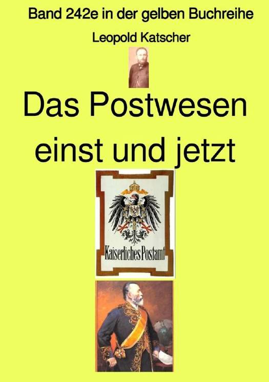 Leopold Katscher erzählt in diesem Buch detailliert über Post, Briefe, Pakete, Postsparen und alles, was mit der Post zusammenhängt von der Zeit der alten Ägypter bis nach 1900. Einige Themen: Die Hillschen Postreformen - Mittel und Wege des Postverkehrs - Was die Post heutzutage leistet - Der Weltpostverein. Außerdem folgen Informationen über die See-Post im geschichtlichen Rückblick. Mit vielen Bildern und Zusatzinformationen wird dieser Band neu herausgegeben von Jürgen Ruszkowski. -Rezession: Ich bin immer wieder begeistert von der "Gelben Buchreihe". Die Bände reißen einen einfach mit. Inzwischen habe ich ca. 20 Bände erworben und freue mich immer wieder, wenn ein neues Buch erscheint. oder: Sämtliche von Jürgen Ruszkowski aus Hamburg herausgegebene Bücher sind absolute Highlights. Dieser Band macht da keine Ausnahme. Sehr interessante und abwechslungsreiche Themen aus verschiedenen Zeit-Epochen, die mich von der ersten bis zur letzten Seite gefesselt haben! Man kann nur staunen, was der Mann in seinem Ruhestand schon veröffentlicht hat. Alle Achtung!