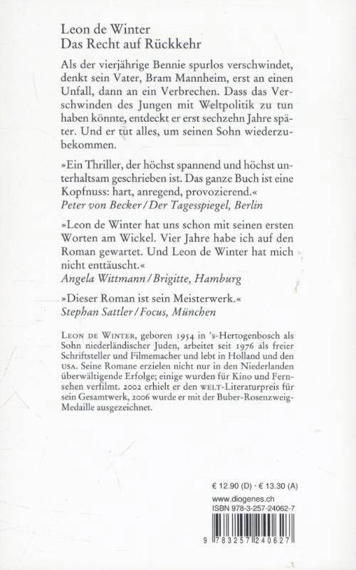 Als der vierjährige Bennie spurlos verschwindet, denkt sein Vater, Bram Mannheim, erst an einen Unfall, dann an ein Verbrechen. Dass das Verschwinden des Jungen mit Weltpolitik zu tun haben könnte, entdeckt er erst sechzehn Jahre später. Und er tut alles, um seinen Sohn wiederzubekommen.