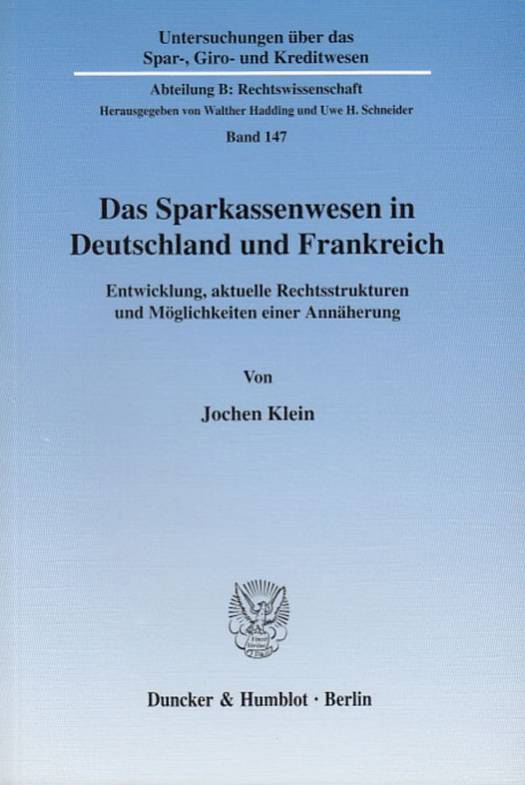 In der vorliegenden rechtsvergleichenden Arbeit wird das französische Sparkassenrecht erstmals in deutscher Sprache umfassend analysiert. Der Verfasser untersucht, ob die genossenschaftlichen Strukturen des französischen Sparkassenwesens auf das deutsche Sparkassenwesen übertragbar sind, wobei er auch Fragen der Verschmelzung öffentlich-rechtlicher Sparkassen mit Kreditgenossenschaften erörtert. Jochen Klein gelangt zu dem Ergebnis, daß die Umwandlung der deutschen kommunalen Sparkassen in eingetragene Genossenschaften nach französischem Muster im Falle der Privatisierung eine sinnvolle Lösung ist, die einer Umwandlung in Aktiengesellschaften oder Stiftungen vorzuziehen ist. Auszüge der einschlägigen französischen Gesetze werden im Anhang der Untersuchung wiedergegeben.
