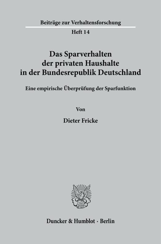 Zwar gehört das Sparen mit allen damit zusammenhängenden Problemen keineswegs zu den vernachlässigten Gebieten der Nationalökonomie; die Literatur darüber ist für einen einzelnen kaum mehr überschaubar. Dennoch fehlt es immer noch an einer zugleich umfassenden und dabei allgemein anerkannten Theorie über den Sparprozeß. (aus dem Vorwort)