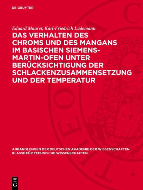 Keine ausführliche Beschreibung für "Das Verhalten des Chroms und des Mangans im basischen Siemens-Martin-Ofen unter Berücksichtigung der Schlackenzusammensetzung und der Temperatur" verfügbar.
