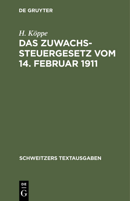 Das Zuwachssteuergesetz Vom 14. Februar 1911