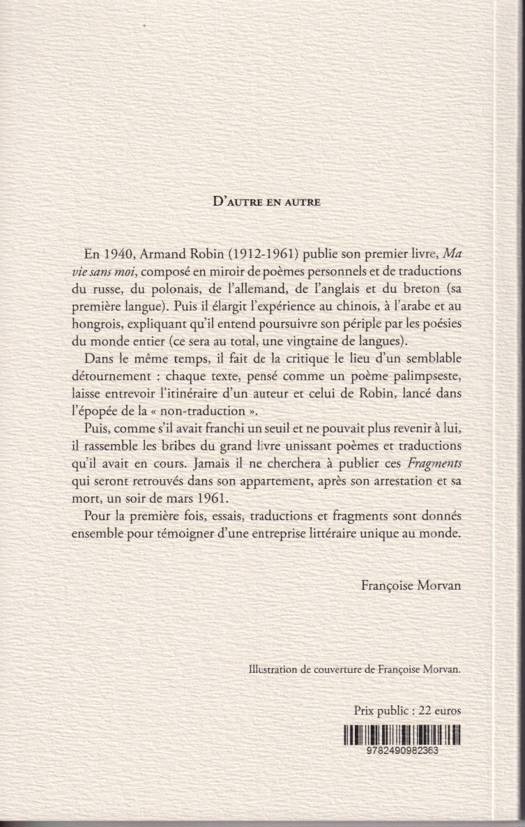 En 1940, Armand Robin (1912-1961) publie son premier livre, Ma vie sans moi, composé en miroir de poèmes personnels et de traductions du russe, du polonais, de l’allemand, de l’anglais et du breton (sa première langue). Puis il élargit l’expérience au chinois, à l’arabe et au hongrois, expliquant qu’il entend poursuivre son périple par les poésies du monde entier (ce sera au total, une vingtaine de langues).