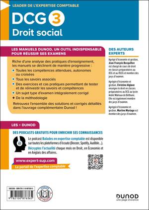 Tout le DCG 3 présenté conformément au programme. Les + du cours : définitions des mots-clés, exemples et focus thématiques, citations, schémas et tableaux de synthèse, avis d'experts et ressources complémentaires… Les + des applications : des exercices variés et progressifs, une évaluation pas à pas par les compétences, des conseils et fiches méthodologiques, un sujet type d'examen intégralement renouvelé et corrigé,toutes les corrections des quiz et QCM.