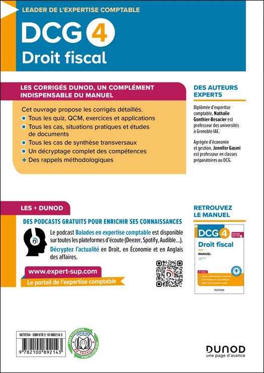 Retrouvez les corrigés détailles du manuel DCG 4 - Droit fiscal - Réforme 2026-2027