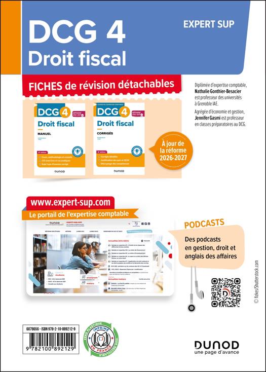 100 % conformes au programme de DCG et aux guides pédagogiques, les fiches de révision Dunod sont détachables pour des utilisations variées (glissées dans le manuel, en complément du cours du professeur, à emporter partout…).