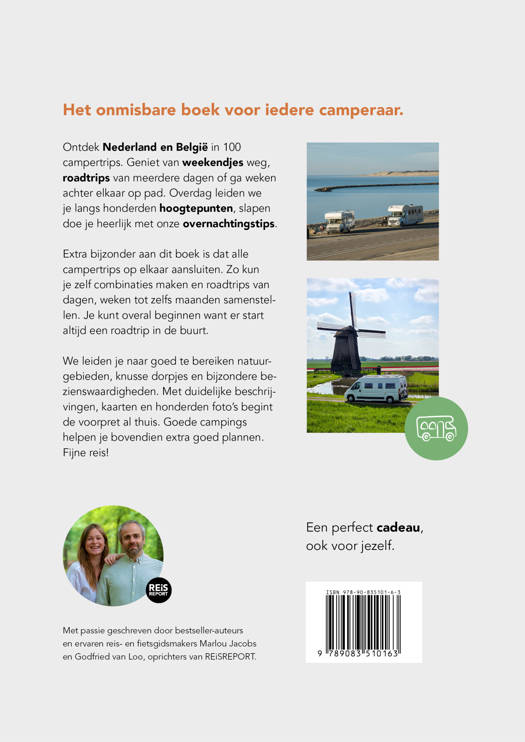 Met 100 campertrips is dit boek zonder twijfel het meest uitgebreide camperboek van de Benelux, dat een mooi plekje verdient in iedere camper. Met honderden schitterende foto’s, kaarten en uitvoerige omschrijvingen is het al voordat je onderweg gaat, heerlijk om doorheen te bladeren. Aanvullende extra's voor echte camperfans vind je op www . reisreport . nl.