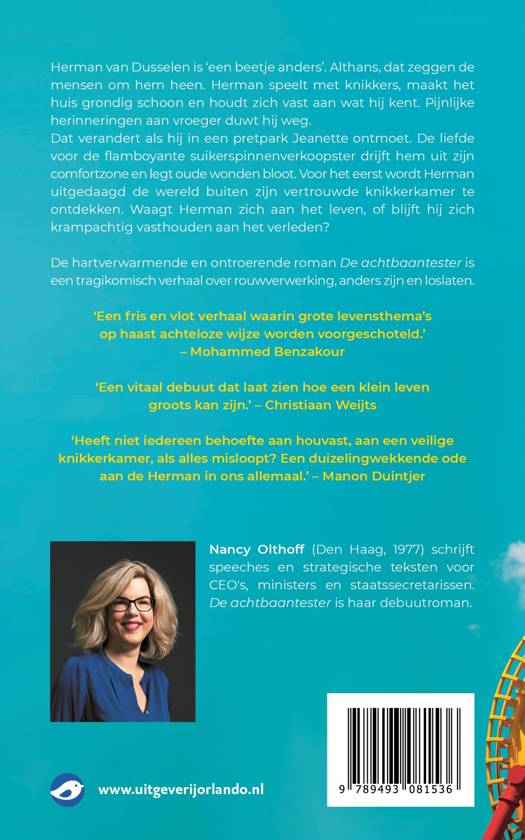 De hartverwarmende en ontroerende roman De achtbaantester is een tragikomisch verhaal over rouwverwerking, anders zijn en loslaten.