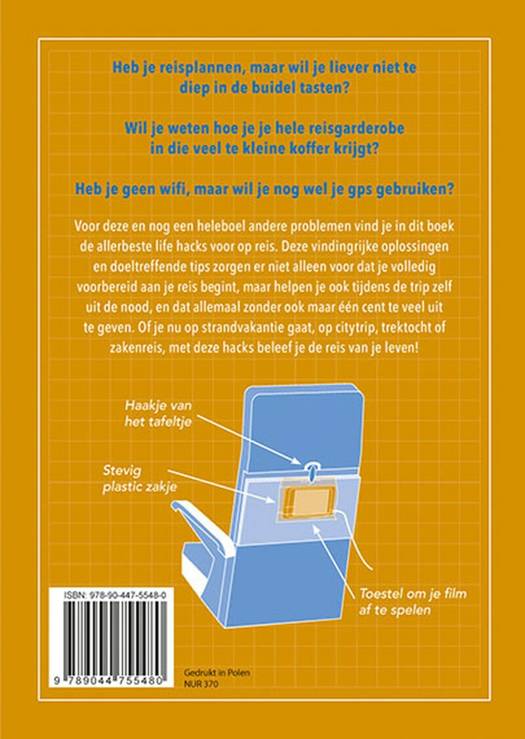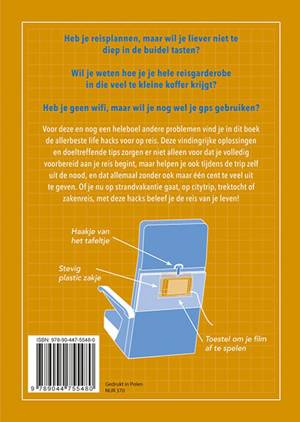 Heb je reisplannen, maar wil je liever niet te diep in de buidel tasten? Wil je weten hoe je je hele reisgarderobe in die veel te kleine koffer krijgt? Heb je geen wifi, maar wil je nog wel je gps gebruiken? En hoe zorg je ervoor dat het zand van die ene strandvakantie je niet voor de rest van je leven achtervolgt? Voor deze en nog een heleboel andere problemen vind je in dit boek de allerbeste life hacks voor op reis. Deze vindingrijke oplossingen en doeltreffende tips zorgen er niet alleen voor dat je volledig voorbereid aan je reis begint, maar helpen je ook tijdens de trip zelf uit de nood, en dat allemaal zonder ook maar één cent te veel uit te geven. Of je nu op strandvakantie gaat, op citytrip, trektocht of zakenreis, met deze hacks beleef je de reis van je leven!