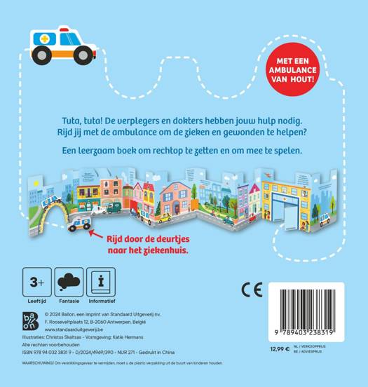 Tuta, tuta! De verplegers en dokters hebben jouw hulp nodig. Rijd jij met de ambulance om de zieken en gewonden te helpen? Een leerzaam boek om rechtop te zetten en om mee te spelen.