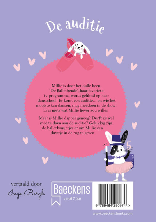 Millie is door het dolle heen. ‘De BalletBende’, haar favoriete tv-programma, wordt gefilmd op haar dansschool! Er komt een auditie… en wie het mooist kan dansen, mag meedoen in de show! Er is niets wat Millie liever zou willen. Maar is ze dapper genoeg? Durft ze wel mee te doen aan de auditie? Gelukkig zijn de balletkonijntjes er om Millie een duwtje in de rug te geven.