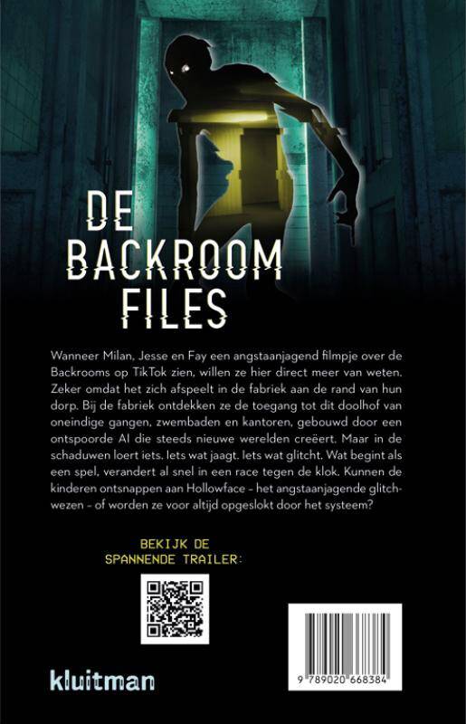 Wanneer Milan, Jesse en Fay een angstaanjagend filmpje over de Backrooms op TikTok zien, willen ze hier direct meer van weten. Zeker omdat het zich afspeelt in de fabriek aan de rand van hun dorp. Bij de fabriek ontdekken ze de toegang tot dit doolhof van oneindige gangen, zwembaden en kantoren, gebouwd door een ontspoorde AI die steeds nieuwe werelden creëert. Maar in de schaduwen loert iets. Iets wat jaagt. Iets wat glitcht. Wat begint als een spel, verandert al snel in een race tegen de klok. Kunnen de kinderen ontsnappen aan Hollowface – het angstaanjagende glitchwezen – of worden ze voor altijd opgeslokt door het systeem?