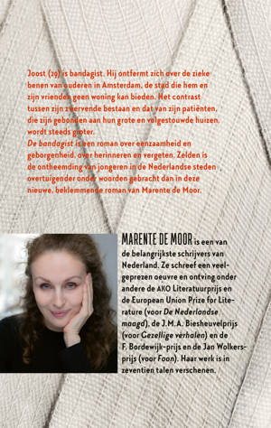 De bandagist is een roman over eenzaamheid en geborgenheid, over herinneren en vergeten. Zelden is de ontheemding van jongeren in de Nederlandse steden overtuigender onder woorden gebracht dan in deze nieuwe, beklemmende roman van Marente de Moor.