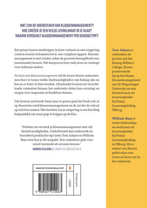'Verbeter en versterk je klassenmanagement met vijf sleutelvaardigheden. Onderbouwd met onderzoek en boordevol praktische tips laten Tom Adams en William Buys zien hoe je dit aanpakt. Een onmisbare gids voor zowel startende als ervaren leraren.'