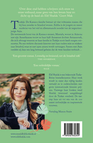 Genomineerd voor de Women's Prize for Fiction Voor lezers van Isabel Allende en Nino Haratischwili Turkije, De Kazanci-familie bestaat uit vier volwassen zussen die bij hun moeder in Istanbul wonen. Zehila is de jongste en meest moderne van het stel en alleenstaande moeder van de negentienjarige Asya. De vervreemde broer van de Kazanci-zussen, Mustafa, woont in Arizona met zijn Armeense vrouw en haar jongvolwassen dochter, Armamoush, die zich afvraagt waarom ze haar familie in Turkije nooit heeft mogen ontmoeten. Na een verhitte discussie hierover met haar ouders reist ze stiekem naar Istanbul, waar ze met open armen wordt ontvangen. Samen met Asya ontdekt zij daar een lang bewaard geheim dat de twee families verbindt… 'Over deze stad hebben schrijvers zich eeuw na eeuw verbaasd, maar geen een van hen kwam haar zo dicht op de huid als Elif Shafak.' Geert Mak 'Een verleidelijke roman: ieder hoofdstuk is naar een gerecht genoemd, en de warmte van de Turkse keuken vormt de basis voor het spannende plot.' ELLE