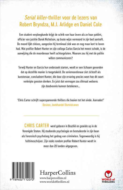 Een student verpleegkunde krijgt de schrik van haar leven als ze haar patiënt, officier van justitie Derek Nicholson, op brute wijze vermoord in zijn bed aantreft. De moord lijkt zinloos, aangezien hij terminaal ziek was en nog maar kort te leven had. Wat profiler Robert Hunter en zijn collega Carlos Garcia het meest schokt, is de aanwijzing die de moordenaar heeft achtergelaten. Waarom zou hij met de politie willen communiceren?