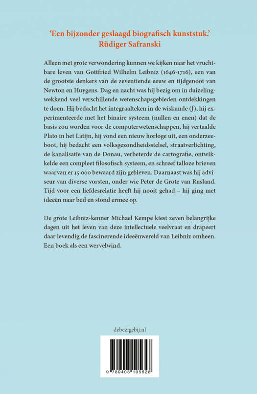 De grote Leibniz-kenner Michael Kempe kiest zeven belangrijke dagen uit het leven van deze intellectuele veelvraat en drapeert daar levendig de fascinerende ideeënwereld van Leibniz omheen. Een boek als een wervelwind.