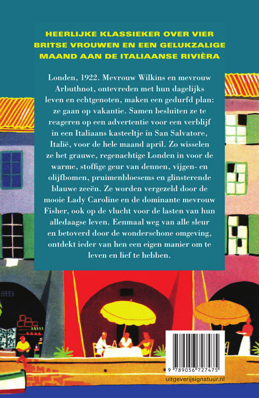 Londen, 1922. Mevrouw Wilkins en mevrouw Arbuthnot, ontevreden met hun dagelijks leven en echtgenoten, maken een gedurfd plan: ze gaan op vakantie. Samen besluiten ze te reageren op een advertentie voor een Italiaans kasteeltje in San Salvatore, Italië, voor de hele maand april. Zo wisselen ze het grauwe, regenachtige Londen in voor de warme, stoffige geur van dennen, vijgen- en olijfbomen, pruimenbloesems en glinsterende blauwe zeeën. Ze worden vergezeld door de mooie Lady Caroline en de dominante mevrouw Fisher, ook op de vlucht voor de lasten van hun alledaagse leven. Ieder van hen ontdekt een eigen manier om te leven en lief te hebben.