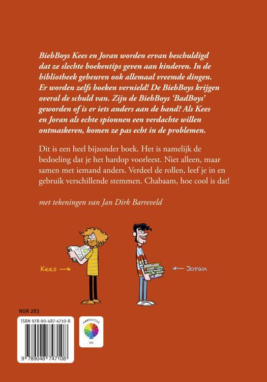 Dit spannende toneelleesboek op AVI M6 gaat over BiebBoys Joran en Kees. Zij geven boekentips aan kinderen, maar worden er nu van beschuldigd dat ze slechte boekentips geven. Er komen steeds meer klachten binnen én de jongens vernielen zelfs boeken. Wat is er toch aan de hand met de jongens?