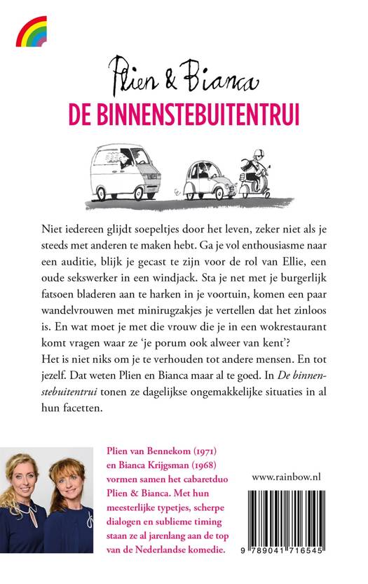 Het is niet niks om je te verhouden tot andere mensen. En tot jezelf. Dat weten Plien en Bianca maar al te goed. In De binnenstebuitentrui tonen ze dagelijkse ongemakkelijke situaties in al hun facetten.