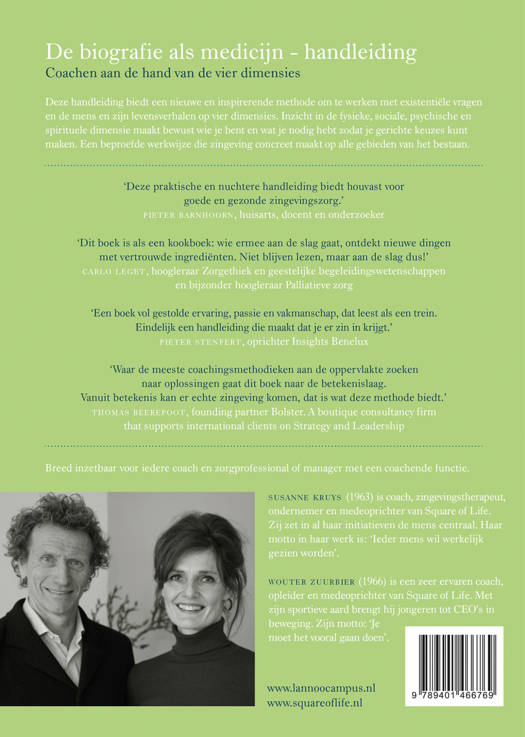 Deze handleiding biedt een nieuwe en inspirerende methode om te werken met existentiële vragen en de mens en zijn levensverhalen op vier dimensies. Inzicht in de fysieke, sociale, psychische en spirituele dimensie maakt bewust wie je bent en wat je nodig hebt zodat je gerichte keuzes kunt maken. Een beproefde werkwijze die zingeving concreet maakt op alle gebieden van het bestaan.