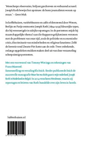 In koffiehuizen, variététheaters en nachtbrakerskroegen of slenterend langs de straten van Wenen, Berlijn en Parijs ontmoette Joseph Roth (1894-1939) tijdens het interbellum kleurrijke types die hij in beroemd geworden krantenreportages vereeuwigde. In deze portretten snijdt hij maatschappelijke thema's aan die frappante gelijkenissen vertonen met de problemen van onze tijd, zoals de politieke en economische crisis, de discriminatie van minderheden en religieus fanatisme. Zelfs de kwestie rond Zwarte Piet komt aan de orde. Tijdens zijn emigrantenjaren wilde Roth een essayreeks publiceren voorzien van houtsneden van Frans Masereel, maar geen enkele uitgever was daarin geïnteresseerd. Hoezeer het werk van Masereel met dat van Roth verwant is, wordt in De blonde neger en andere portretten alsnog overtuigend zichtbaar.