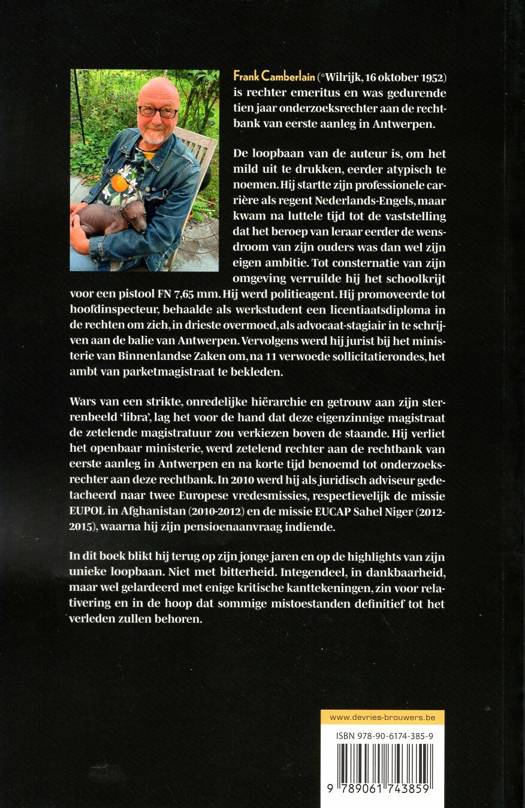 De loopbaan van de auteur is, om het mild uit te drukken, eerder atypisch te noemen. Hij startte zijn professionele carrière als regent Nederlands-Engels, maar kwam na luttele tijd tot de vaststelling dat het beroep van leraar eerde de wensdroom van zijn ouders was dan wel zijn eigen ambitie. tot consternatie van zijn omgeving verruilde hij het schoolkrijt voor een pistool FN 7,65 mm. Hij werd politieagent. Hij promoveerde tot hoofdinspecteur, behaalde als werkstudent een licentiaatsdiploma in de rechten om zich, in drieste overmoed, als advocaat-stagiair in te schrijven aan de balie van Antwerpen. Vervolgens werd hij jurist bij het ministerie van Binnenlandse Zaken om, na 11 verwoede sollicitatierondes, het ambt van parketmagistraat te bekleden. Wars van een strikte, onredelijke hiërarchie en getrouw aan zijn sterrenbeeld 'libra', lag het voor de hand dat deze eigenzinnige magistraat de zetelende magistratuur zou verkiezen boven de staande. Hij verliet het openbaar ministerie, werd zetelend rechter aan de rechtbank van eerste aanleg in Antwerpen en na korte tijd benoemd tot onderzoeksrechter aan deze rechtbank. In 2010 werd hij als juridisch adviseur gedetacheerd naar twee Europese vredesmissies, respectievelijk de missie EUPOL in Afghanistan (2010-2012) en de missie EUCAP Sahel Niger (2012-2015), waarna hij zijn pensioenaanvraag indiende.