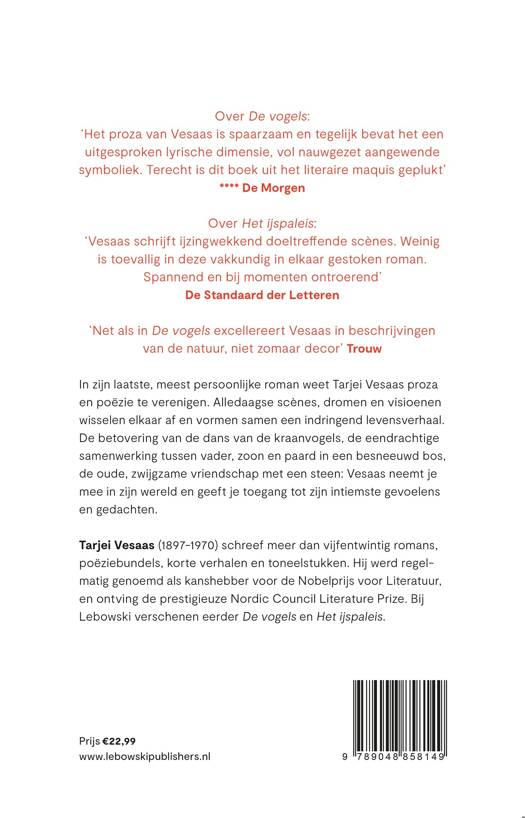 In zijn laatste, meest persoonlijke roman weet Tarjei Vesaas proza en poëzie te verenigen. Alledaagse scènes, dromen en visioenen wisselen elkaar af en vormen samen een indringend levensverhaal. De betovering van de dans van de kraanvogels, de eendrachtige samenwerking tussen vader, zoon en paard in een besneeuwd bos, de oude, zwijgzame vriendschap met een steen: Vesaas neemt je mee in zijn wereld en geeft je toegang tot zijn intiemste gevoelens en gedachten.