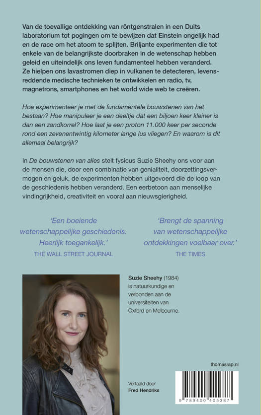 In De bouwstenen van alles stelt fysicus Suzie Sheehy ons voor aan de mensen die, door een combinatie van genialiteit, doorzettingsvermogen en geluk, de experimenten hebben uitgevoerd die de loop van de geschiedenis hebben veranderd. Een eerbetoon aan menselijke vindingrijkheid, creativiteit en vooral aan nieuwsgierigheid.