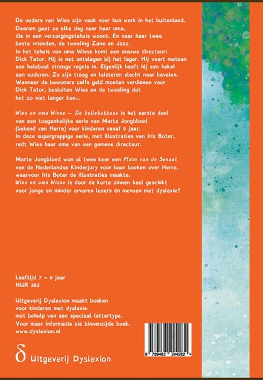 Wies en oma Wisse – De bullebakbaas is het eerste deel van een toegankelijke serie van Marte Jongbloed (bekend van Herre) voor kinderen vanaf 6 jaar. In deze supergrappige serie, met illustraties van Iris Boter, redt Wies haar oma van een gemene directeur.