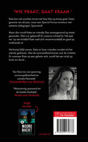 Kate kan niet wachten tot ze met haar klas op kamp gaat. Geen gewone reis dit jaar, maar een Special Forces-avontuur met extreme uitdagingen. Spannend! Maar dan wordt Kates ex-vriendje Dex zwaargewond op straat gevonden. Wat is er gebeurd? En waarom schreef hij ‘Het spijt me’ op een briefje? Kate voelt zich verantwoordelijk en gaat op onderzoek uit. Het kamp blijkt zwaar. Kate en haar vriendengroep worden tot het uiterste gedreven. Met de vermoeidheid komen ook de irritaties. En wanneer Kate op een geheim stuit, wordt het een strijd op leven en dood…