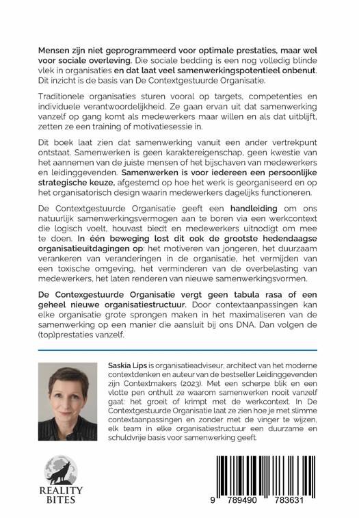 De Contextgestuurde Organisatie geeft een handleiding om ons natuurlijk samenwerkingsvermogen aan te boren via een werkcontext die logisch voelt, houvast biedt en medewerkers uitnodigt om mee te doen. In één beweging lost dit ook de grootste hedendaagse organisatieuitdagingen op: het motiveren van jongeren, het duurzaam verankeren van veranderingen in de organisatie, het vermijden van een toxische omgeving, het verminderen van de overbelasting van medewerkers, het laten renderen van nieuwe samenwerkingsvormen.