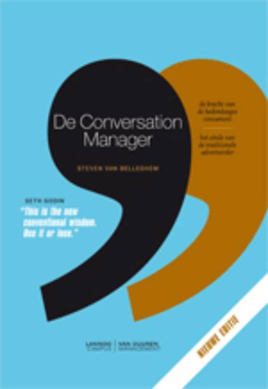 De voorbije jaren is het internet geëvolueerd van een statisch naar een sociaal platform. Die evolutie heeft een impact op de manier waarop consumenten communiceren en aankoopbeslissingen nemen. Jammer genoeg zijn de meeste adverteerders blijven stilstaan. Adverteren op de traditionele manier werkt niet langer. Er is nood aan verandering in de dagelijkse manier van werken van elke adverteerder. De kloof tussen de hedendaagse consument en de traditionele adverteerder stijgt dag na dag. Dit tijdperk is niet het einde van de advertentiemarkt, maar is het einde van de adverteerder! Dit boek biedt de oplossing voor deze uitdaging: een veranderingstraject van adverteerder naar Conversation Manager. De Conversation Manager heeft een frisse visie op hoe merken succesvol opereren in samenwerking met de hedendaagse consument. Converseren met consumenten staat daarbij centraal. Luisteren naar en converseren met consumenten is een noodzakelijk talent om u om te scholen tot een Conversation Manager. Het boek beschrijft aan de hand van sprekende voorbeelden en duidelijk concepten hoe een adverteerder zich kan omscholen tot een Conversation Manager. Het blijft niet bij een theoretisch denkkader. Het boek biedt eveneens praktische tools om uw veranderingsproces binnen de 48 uur te starten. U vindt hier concrete tips om de bedrijfsstrategie aan te passen in de richting van conversation management met tal van handige online tools die u helpen in uw nieuwe job: de Conversation Manager.