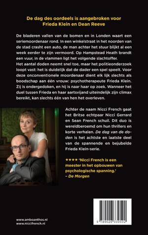 Al acht jaar lang wordt Frieda Klein achtervolgd door Dean Reeve. In de literaire thriller De dag van de doden gaat ze voor het laatst de confrontatie met hem aan. 'De dag van de doden' is het achtste en laatste deel van de Frieda Klein-serie van bestsellerauteur Nicci French. Lees meer over Frieda Klein in de volgende boeken: