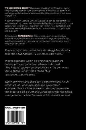 Maar bestaat die plek wel, en laat een veelzijdig kunstenaar als Leonard Cohen zich wel in één beeld vangen. Cohen-kenner Francis Mus (KU Leuven) dook in alle beschikbare archieven, interviewde mensen uit Cohens entourage, analyseerde zijn songteksten en ging op zoek naar de mens achter de bekendste singer-songwriter ter wereld.